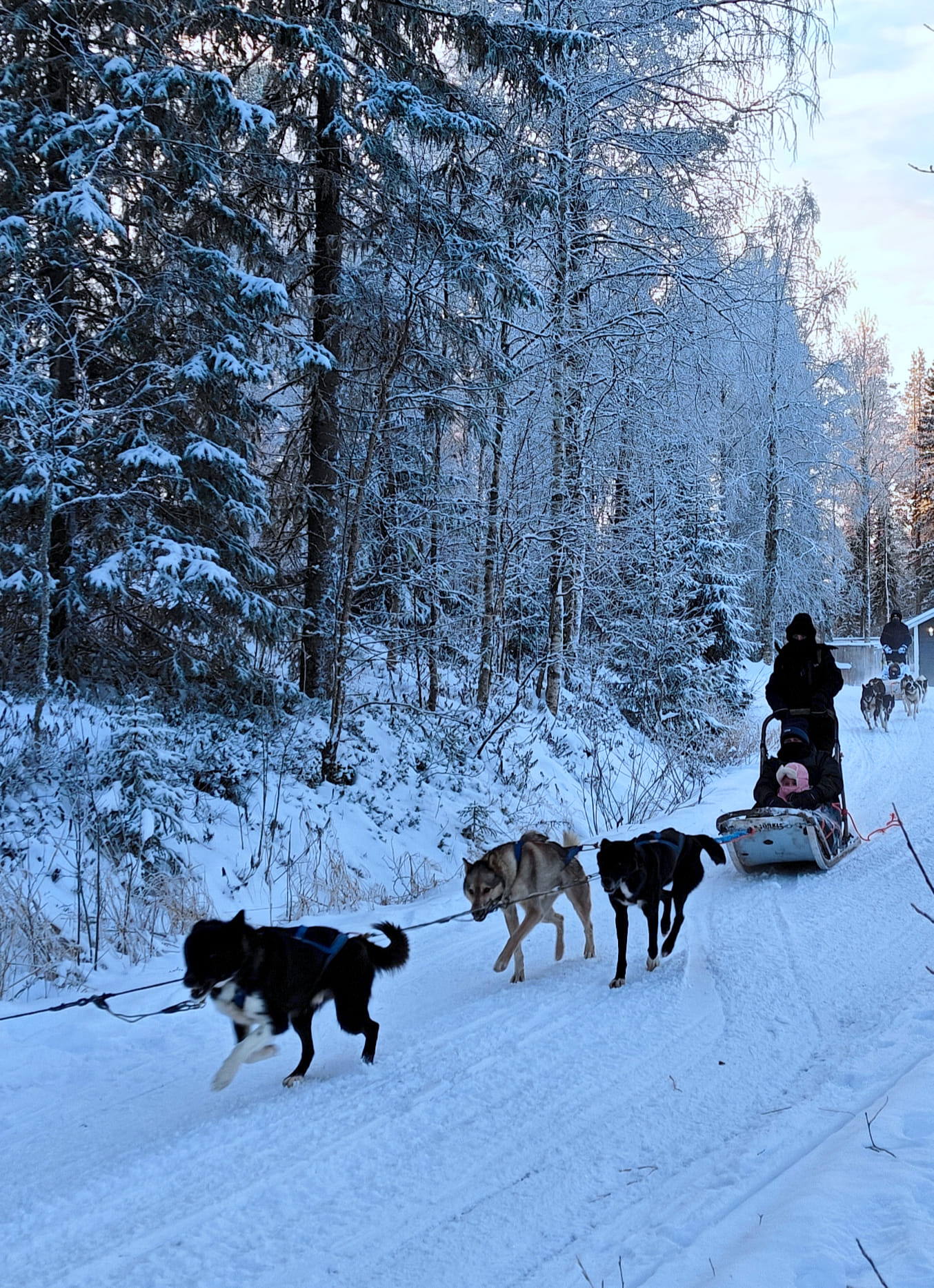 Your journey begins at the pick-up point, where you will meet your guide and join the transfer into the snowy wilderness. After arrival at the husky farm, warm winter clothing will be provided to keep you comfortable throughout the adventure.