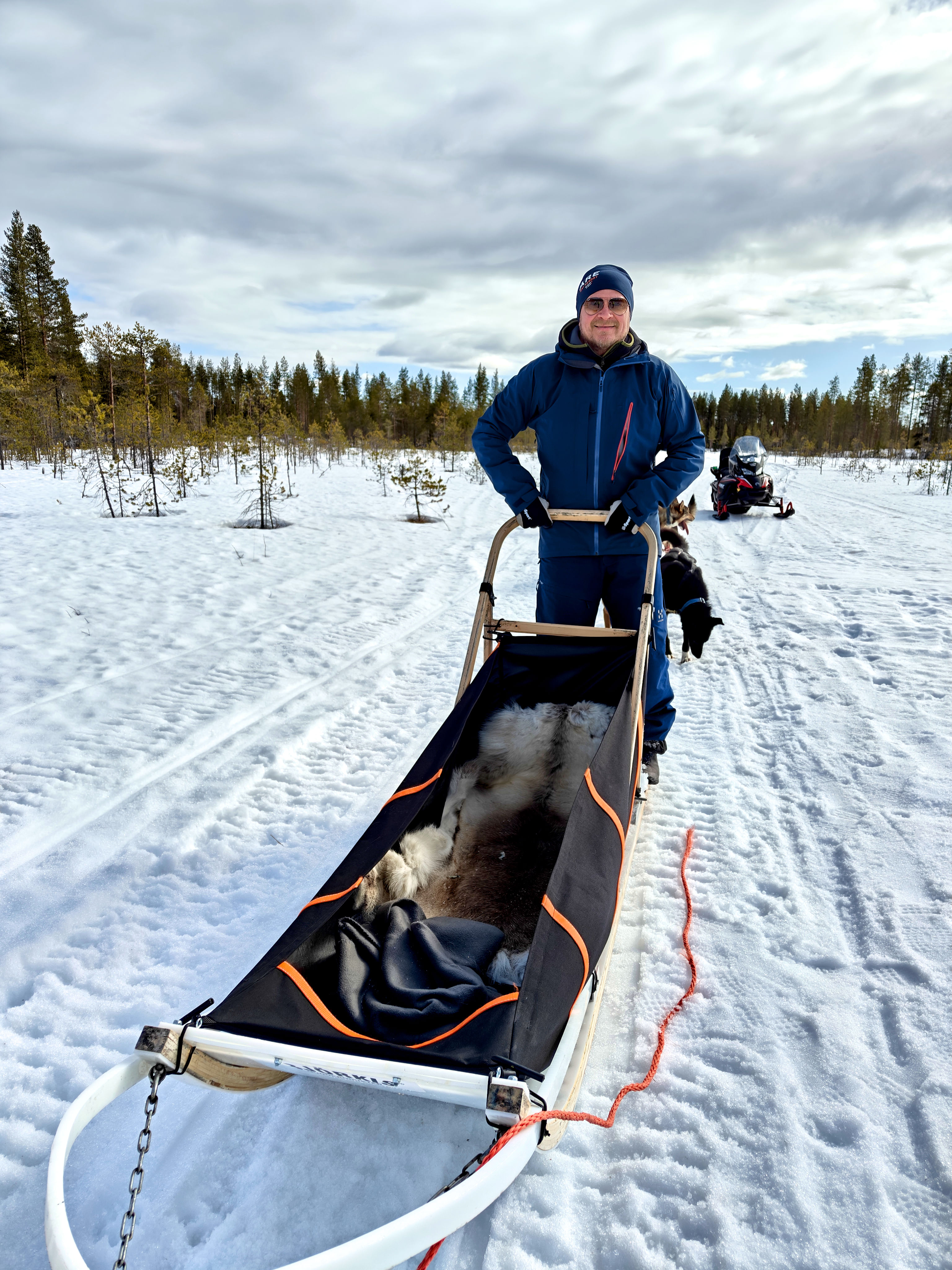 Your local guide leads you to the eager huskies, gives clear driving instructions, and introduces you to your own team. Once ready, you’ll set off on a 6–10 km husky safari through pure white landscapes. Two guests share each sled—one drives, one rides—and you can switch halfway. During the short stop there is also time for photos before continuing the ride. The safari lasts around 30–50 minutes, depending on snow conditions and the dogs’ pace.